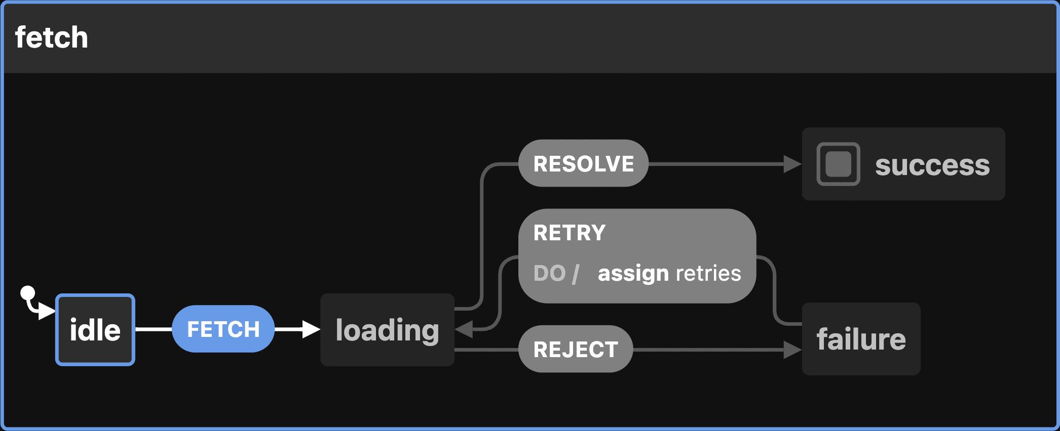 使用 stately.ai/viz 可视化 xstate 定义的状态机。xstate 支持 FSM、HSM、PSM(并行)等,是目前最流行的状态机管理工具